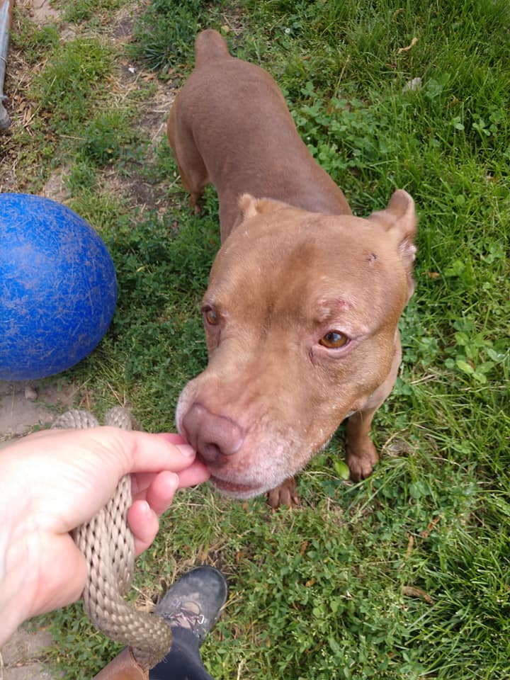 “Hi I’m Tank! I’m about six years old and as you can see by my pictures I’ve got one cute sticky up ear, a happy smile, a curly tail, and a curious sense of the world around me. I’m a sweet and silly boy. I like playing with toys, going on walks, and eating treats. If you pick me for your one and only I promise to make you laugh and smile forever. I am looking for a home with NO other pets and NO children.” You can check out Tank’s PetFinder bio here!
