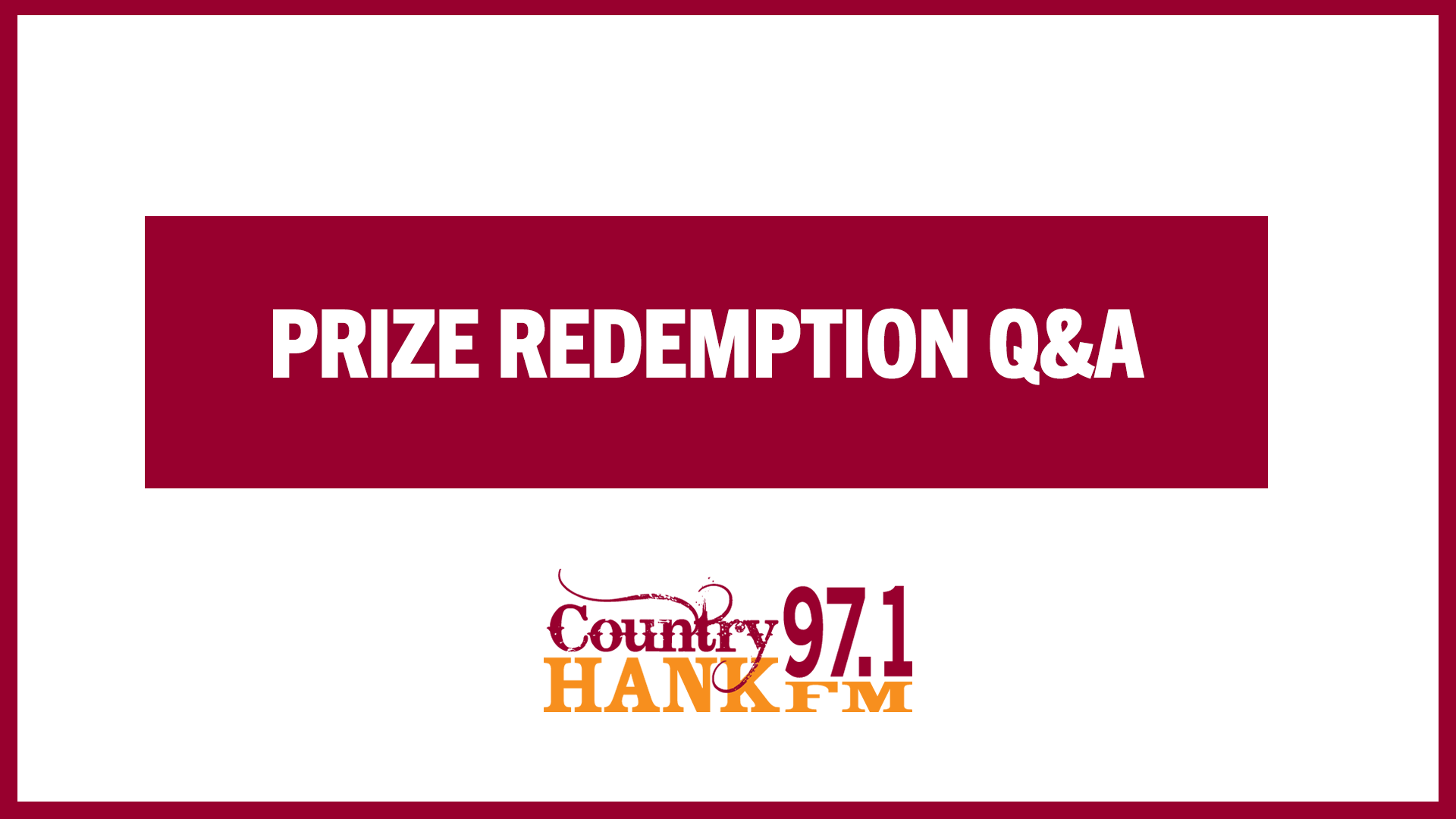 HANK-FM Prize Redemption